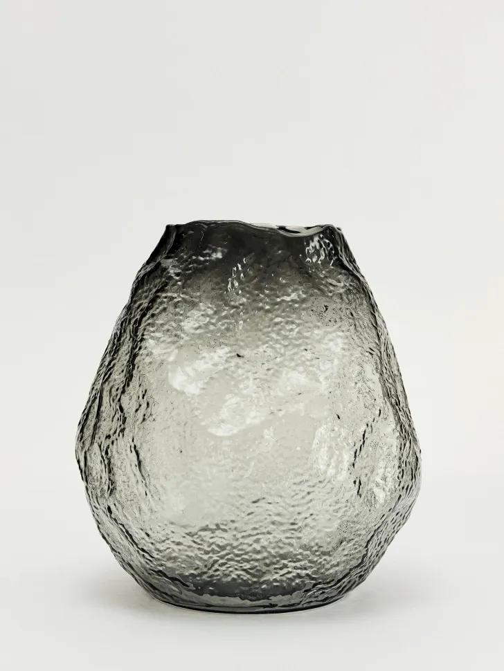 Ваза из стекла с рельефным узором, дымчатый, арт. 0001